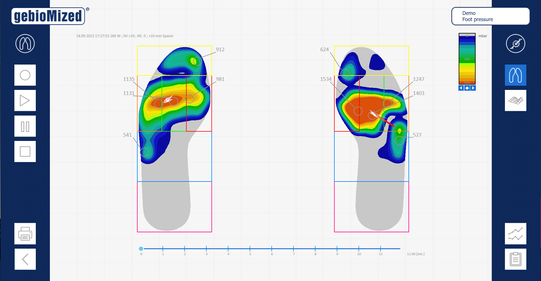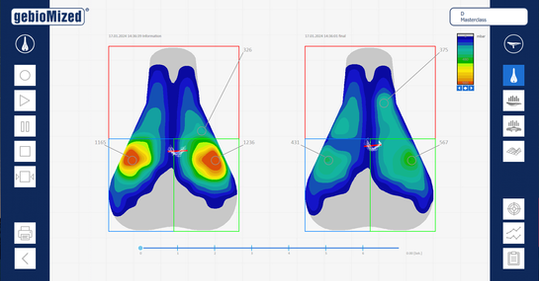 O software GP BIKE fornece um Mapeamento Dinâmico de Pressão no Selim. Este módulo permite a Quantificação de Pressão (Máxima, Média & Hot-Spots), Avaliação do Padrão do Centro de Pressão (Longitudinal, Transversal & Rácio de Estabilidade), Identificação do Carregamento no Selim e guiar todo o processo de tomada de decisão para Recomendação do Selim.